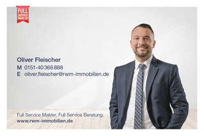 Link zu Drohnenvideos: https://rb.gy/djnlzb Haben wir Ihr Interesse geweckt oder haben Sie weitere Fragen? Überzeugen Sie sich vor Ort bei einer individuellen Besichtigung. Gerne stehe ich Ihnen persönlich zur Verfügung: Mobil +49 151 40 366 888 Tel +49 711 184 278 54 E-Mail oliver.fleischer@rwm-immobilien.de Alle Objektdaten wurden mit der erforderlichen Sorgfalt eingeholt und beruhen auf Angaben des Auftraggebers; hierfür übernehmen wir keine Gewähr. Unsere Angebote sind freibleibend und in diesem Falle nur für Sie bestimmt. Eine Weitergabe an Dritte bedarf unserer Zustimmung.