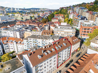 Die Immobilie befindet sich in exzellenter Innenstadtlage im begehrten Heusteigviertel in Stuttgart-Mitte, nur rund 500 Meter südlich der belebten Königstraße. Diese Adresse vereint urbane Zentralität mit kurzen Wegen zu Arbeitsplätzen, Freizeit- und Kultureinrichtungen – und zugleich ein gepflegtes, lebenswertes Wohnumfeld mit hoher Aufenthaltsqualität. Makrolage & Erreichbarkeit Stuttgart zählt zu den stärksten Wirtschaftsstandorten Europas. Die Stadt ist Sitz zahlreicher globaler Unternehmen wie Mercedes-Benz Group, Porsche, Bosch, Mahle, EnBW und der LBBW. Diese Unternehmensdichte sorgt für überdurchschnittliche Arbeitsplatzsicherheit und stetige Zuzugsdynamik qualifizierter Fachkräfte – ein Markt mit strukturellem Nachfrageüberhang, sowohl im Miet- als auch im Kaufsegment. Die Erreichbarkeit ist hervorragend: Nur rund 150 Meter entfernt liegt die U-Bahn-Haltestelle Olgaeck (Linien U5, U6, U7, U12, U15). Von hier aus sind Hauptbahnhof, Europaviertel, Universitätscampus Vaihingen oder Degerloch in wenigen Minuten erreichbar. Der Charlottenplatz und die Königstraße liegen in fußläufiger Distanz. Der Flughafen Stuttgart ist über die U-Bahn und S-Bahn innerhalb von rund 25 Minuten bequem zu erreichen. Mikrolage & Infrastruktur Das Heusteigviertel zählt zu den beliebtesten und architektonisch reizvollsten Wohnquartieren Stuttgarts. Historische Gründerzeitfassaden, begrünte Innenhöfe und ein harmonisches Straßenbild verleihen dem Viertel einen besonderen Charakter. Die Straße selbst ist eine ruhige Seitenstraße mit Anwohnerprägung, gleichzeitig nur wenige Schritte vom pulsierenden Stadtleben entfernt. In der direkten Umgebung finden sich vielfältige Nahversorgungs- und Freizeitmöglichkeiten: Supermärkte, Bäckereien, Apotheken, Ärzte, Fitnessstudios und Cafés sind in unmittelbarer Laufnähe. Das Gerichtsviertel und der Österreichische Platz sind ebenso nah wie zahlreiche Restaurants und Boutiquen. Die Mikrolage profitiert von einer stabilen, einkommensstarken Bewohnerstruktur. Viele Bewohner sind Berufstätige aus dem Technologiesektor, der Finanzwirtschaft oder dem öffentlichen Dienst. Die Nähe zu Hochschulen und Kultureinrichtungen wie der Staatsgalerie, dem Theaterhaus und der Musikhochschule sorgt zusätzlich für breite Nachfrage bei jungen Berufstätigen, Akademikern, Expats und Paaren. Entwicklungsperspektive Die Stuttgarter Innenstadt befindet sich in einer Phase gezielter Aufwertung. Das Programm „AKUT – Innenstadt neu denken" und das städtebauliche Konzept „Stuttgart am Fluss" fördern die Belebung der innerstädtischen Wohn- und Aufenthaltsqualität. Das Heusteigviertel profitiert davon überproportional, da es bereits über eine hochwertige Struktur verfügt und in unmittelbarer Nähe zu den Entwicklungsachsen liegt. Maßnahmen zur Verkehrsberuhigung, Begrünung und Förderung des Fußgänger- und Radverkehrs steigern zusätzlich die Attraktivität des Wohnumfelds.