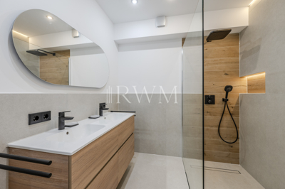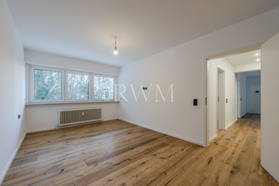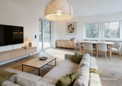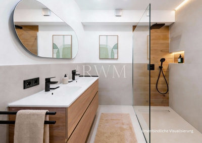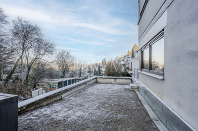 Zeitgemäßes und attraktives Wohnen in exklusiver Halbhöhenlage am Wernhaldenpark an der Weinsteige in Stuttgart-Süd. Genießen Sie die Aussicht über das Stadtzentrum, erleben Sie Sonnenuntergänge auf der außergewöhnlichen Terrasse und tauchen Sie in die idyllische Natur am Waldrand ein. Diese charmante 3,5-Zimmer-Wohnung befindet sich im 1. Obergeschoss eines gepflegten Mehrfamilienhauses (Baujahr 1968) mit 7 Parteien. Die helle, stilvolle Wohnung verteilt sich auf 97 m² Wohnfläche und überzeugt mit einem durchdachten Grundriss. In den Jahren 2025/2026 wurden an der Wohnung durch Fachunternehmen verschiedene Sanierungs- und Modernisierungsarbeiten durchgeführt. Diese umfassten insbesondere die Erneuerung von Bodenbelägen einschließlich Estricharbeiten, die Neugestaltung des Badezimmers und des WCs, die Überarbeitung der gesamten elektrischen Anlage innerhalb der Wohnung, den Austausch von Fensterscheiben und Türelementen zur Terrasse sowie den Einbau neuer Innentüren. Teilweise wurden zudem Heizkörper erneuert und eine Fußbodenheizung installiert. Vom zentralen Flur gelangen Sie in alle Zimmer. Die großzügige Küche bietet ausreichend Platz für eine moderne Einbauküche in U-Form. Alternativ findet hier auch ein kleiner Essbereich Platz. Der Küchenboden ist mit modernen, grauen Fliesen ausgestattet. Das innenliegende Badezimmer ist modern ausgestattet mit einer großen bodengleichen Dusche, Wandspiegel und einem Doppelwaschtisch. Die Details unterstreichen die Hochwertigkeit der Wohnungsausstattung: indirekte Beleuchtung, integrierte Wandnische für Duschprodukte, großflächige graue Fliesen, Holzoptik-Fliesen in der Dusche sowie matt-schwarze Armaturen. Die separate Toilette sorgt zusätzlich für Komfort. Für zusätzliche Alltagstauglichkeit sorgt der Hauswirtschaftsraum neben dem Badezimmer. Dieser bietet genügend Platz für Waschmaschine und Trockner und erweitert den Stauraum in der Wohnung. Am Ende des Flurs befindet sich das große Hauptschlafzimmer sowie ein weiteres kleineres Zimmer. Angrenzend an das große Zimmer gibt es ein Ankleidezimmer, das optional auch als Home Office Bereich genutzt werden kann. Das kleinere Zimmer bietet ebenso individuelle Möglichkeiten, z. B. als Arbeits-, Kinder- oder Gästezimmer. Das Herzstück bildet der offene und weitläufige Wohn- und Essbereich mit Zugang zur Terrasse. Die großen Fensterflächen empfangen viel Tageslicht und schaffen eine freundliche Wohnatmosphäre. Von hier aus gelangt man direkt auf die repräsentative Terrasse mit angrenzendem Garten, der zu Entspannung oder Geselligkeit einlädt. Die Größe der Terrasse, der Garten sowie die kleinere Terrasse vor dem Haus ermöglichen vielfältige Gestaltungsideen. Abgerundet wird das Angebot durch einen zugehörigen Kellerraum sowie einen Stellplatz in einer Doppelgarage. Die Garage lässt sich bequem mit einer Fernbedienung öffnen. Insgesamt präsentiert sich diese Top-Immobilie als zeitgemäß, funktional und wohnlich, mit einem gelungenen Zusammenspiel aus Weitläufigkeit und Privatsphäre. Hier überzeugen der durchdachte Grundriss, helle und großzügige Wohnbereiche und die gelungene Verbindung von Innen- und Außenraum. Die smarte Raumaufteilung, moderne Ausstattungsdetails und die attraktive Terrasse mit Gartenanteil machen sie zu einem komfortablen Zuhause mit hoher Wohnqualität. Hochwertige Materialien (Eiche-Parkett in den Wohnräumen, moderne Fliesen in Küche, Bad und WC) unterstreichen den gehobenen Wohncharakter.